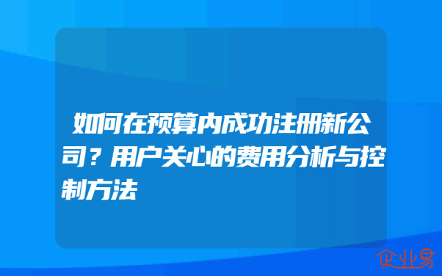 - 如何在预算内成功注册新公司?用户关心的费用分析与控制方法