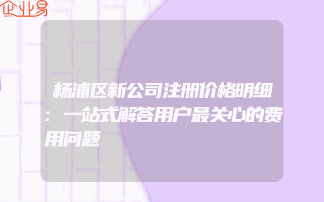 - 杨浦区新公司注册价格明细:一站式解答用户最关心的费用问题