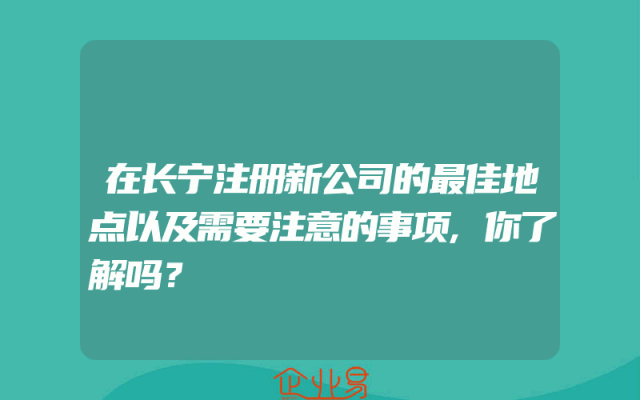 - 在长宁注册新公司的最佳地点以及需要注意的事项,你了解吗?