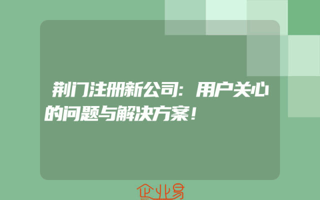 - 荆门注册新公司:用户关心的问题与解决方案!