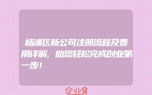 - 杨浦区新公司注册流程及费用详解,助您轻松完成创业第一步!