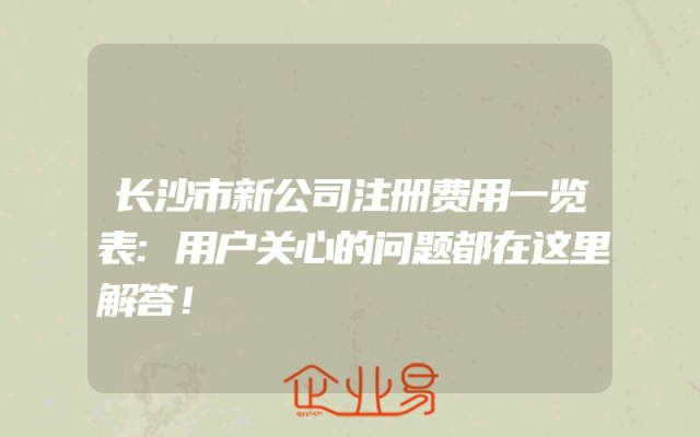 - 长沙市新公司注册费用一览表:用户关心的问题都在这里解答!