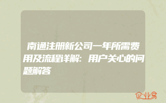 - 南通注册新公司一年所需费用及流程详解:用户关心的问题解答