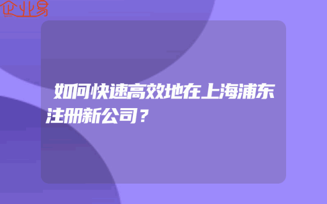 - 如何快速高效地在上海浦东注册新公司?