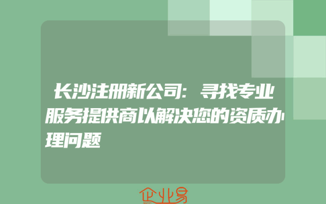 - 长沙注册新公司:寻找专业服务提供商以解决您的资质办理问题