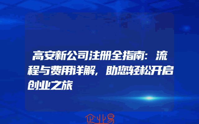 - 高安新公司注册全指南:流程与费用详解,助您轻松开启创业之旅