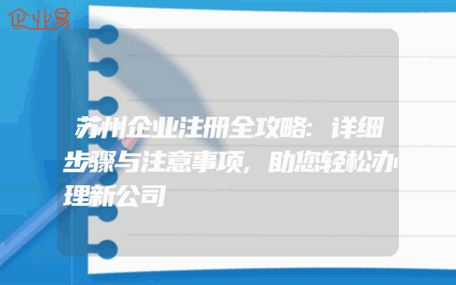 - 苏州企业注册全攻略:详细步骤与注意事项,助您轻松办理新公司