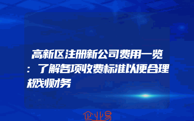 - 高新区注册新公司费用一览:了解各项收费标准以便合理规划财务