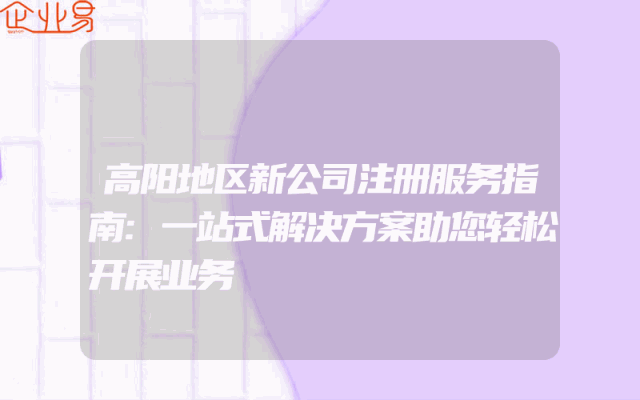 - 高阳地区新公司注册服务指南:一站式解决方案助您轻松开展业务