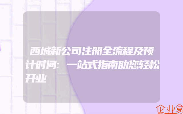 - 西城新公司注册全流程及预计时间:一站式指南助您轻松开业