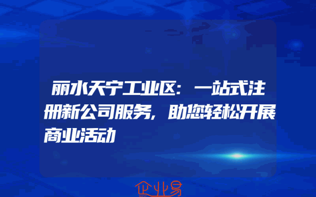 - 丽水天宁工业区:一站式注册新公司服务,助您轻松开展商业活动