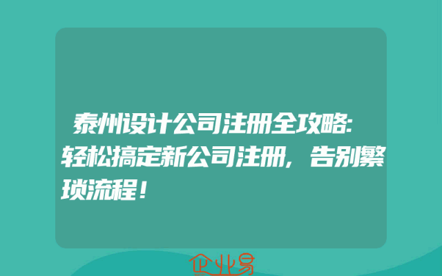 - 泰州设计公司注册全攻略:轻松搞定新公司注册,告别繁琐流程!