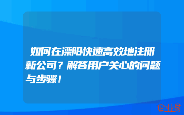 - 如何在溧阳快速高效地注册新公司?解答用户关心的问题与步骤!