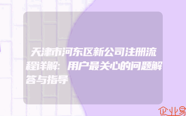 - 天津市河东区新公司注册流程详解:用户最关心的问题解答与指导