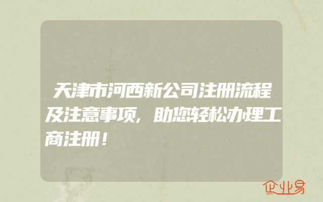 - 天津市河西新公司注册流程及注意事项,助您轻松办理工商注册!