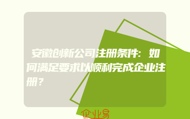 - 安徽创新公司注册条件:如何满足要求以顺利完成企业注册?
