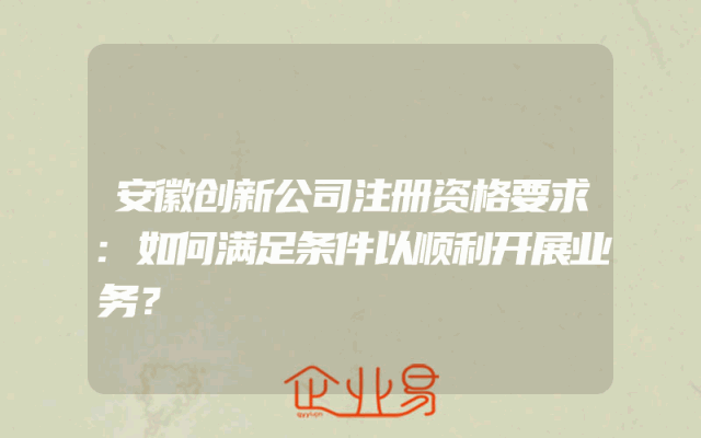 - 安徽创新公司注册资格要求:如何满足条件以顺利开展业务?