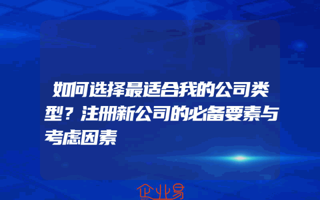 - 如何选择最适合我的公司类型?注册新公司的必备要素与考虑因素