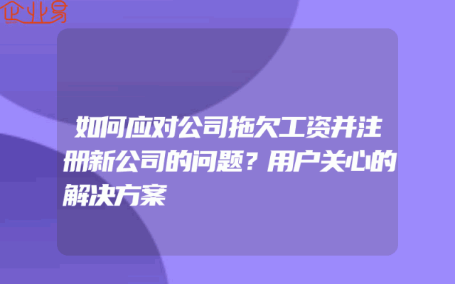 - 如何应对公司拖欠工资并注册新公司的问题?用户关心的解决方案