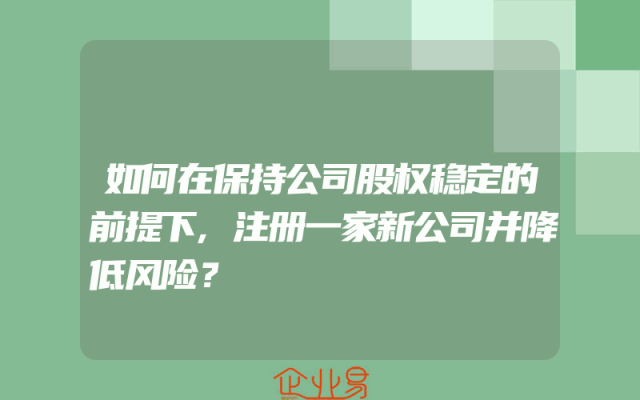 - 如何在保持公司股权稳定的前提下,注册一家新公司并降低风险?