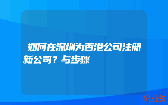 - 如何在深圳为香港公司注册新公司?与步骤