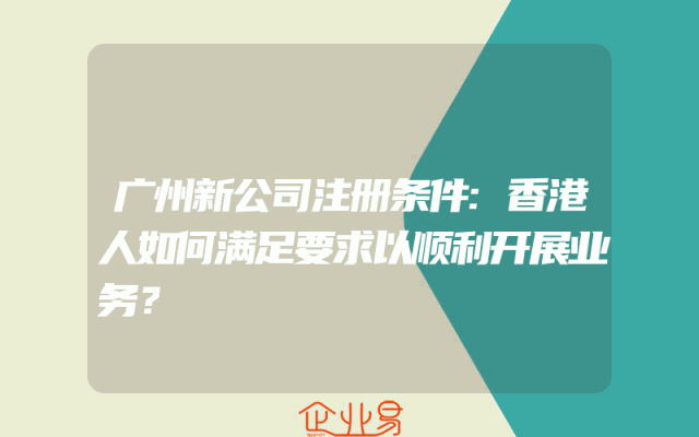 - 广州新公司注册条件:香港人如何满足要求以顺利开展业务?