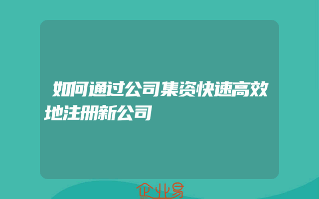 - 如何通过公司集资快速高效地注册新公司