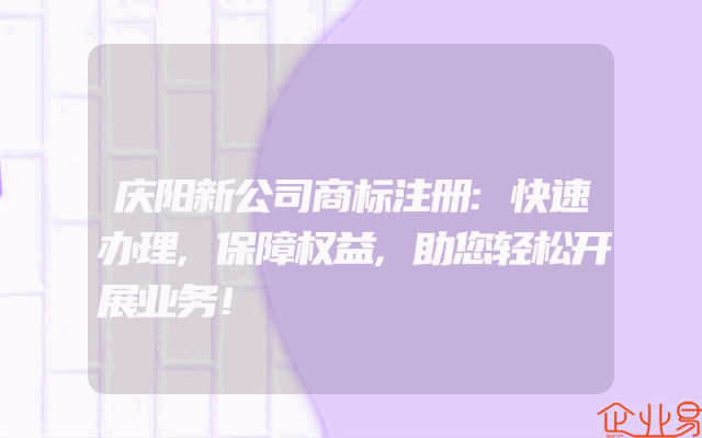 - 庆阳新公司商标注册:快速办理,保障权益,助您轻松开展业务!