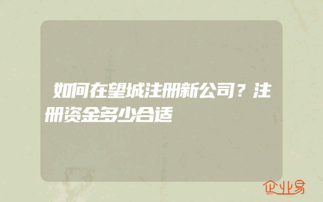 - 如何在望城注册新公司?注册资金多少合适