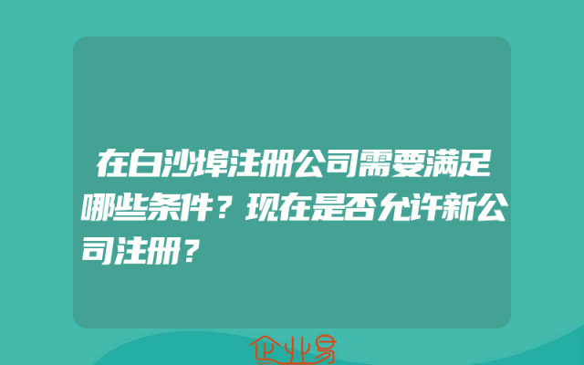 - 在白沙埠注册公司需要满足哪些条件?现在是否允许新公司注册?