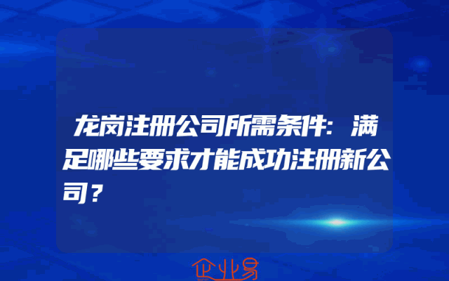 - 龙岗注册公司所需条件:满足哪些要求才能成功注册新公司?