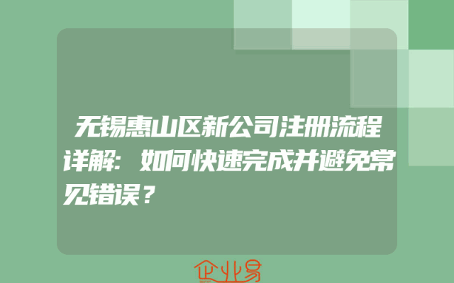 - 无锡惠山区新公司注册流程详解:如何快速完成并避免常见错误?