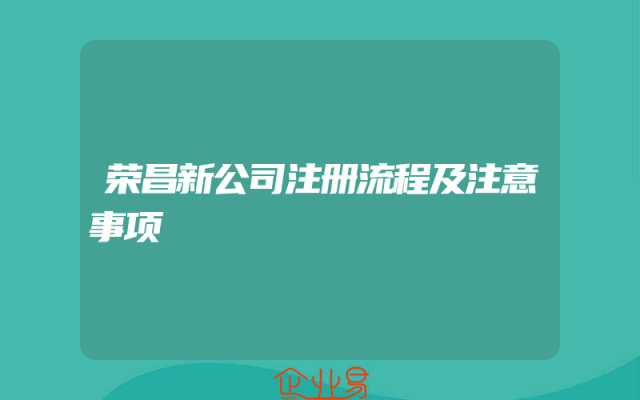 - 荣昌注册新公司全流程及注意事项,用户最关心的问题都在这里!在现代社会中,创业已经成为了许多人的追求。而在创业的过程中,注册新公司是一个非常重要的环节。本文将为您详细介绍荣昌注册新公司的全流程及注意事项,帮助您顺利完成公司注册。一、前期准备1