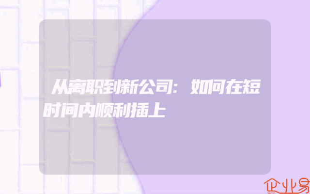 - 从离职到新公司:如何在短时间内顺利插上?用户关心的问题解答在职场中,员工的离职和跳槽是很常见的现象。对于离职的员工来说,找到下一份工作并在新公司顺利插上是一项重要的任务。本文将为你解答一些用户关心的问题,帮助你在短时间内成功地融入新公司。如
