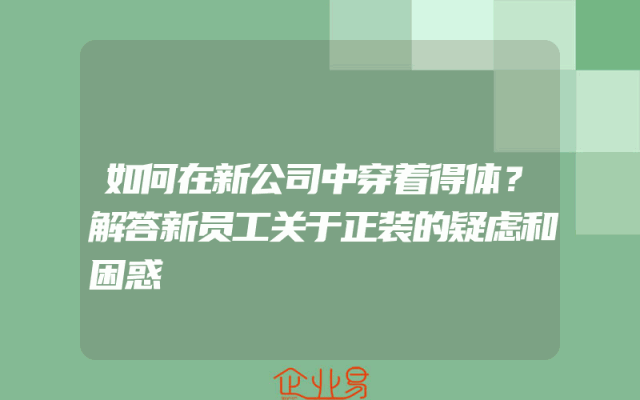 - 如何在新公司中穿着得体?解答新员工关于正装的疑虑和困惑