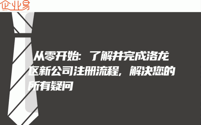 - 从零开始:了解并完成洛龙区新公司注册流程,解决您的所有疑问在洛阳市,如果您想要创立一家新公司,首先需要了解并完成公司的注册流程。本文将为您提供详细的步骤和解答您可能遇到的各种问题。希望对您有所帮助。第一步:确定公司名称和类型在开始注册