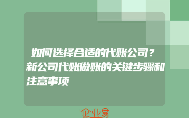 - 如何选择合适的代账公司?新公司代账做账的关键步骤和注意事项