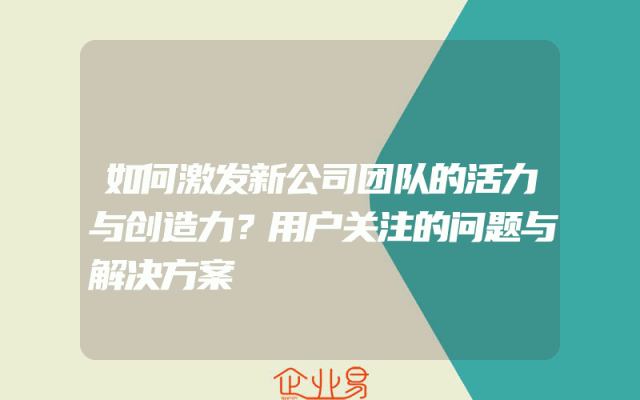 - 如何激发新公司团队的活力与创造力?用户关注的问题与解决方案