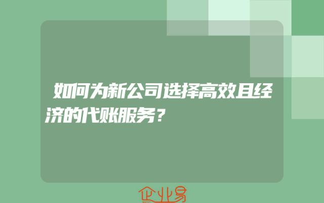- 如何为新公司选择高效且经济的代账服务?