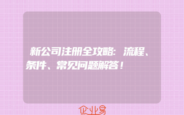 - 新公司注册全攻略:流程、条件、常见问题解答,助您轻松创业!在新时代的浪潮中,越来越多的人选择创业,开设自己的公司。然而,对于初次创业的人来说,公司注册的流程和所需条件可能会让人感到困惑。本文将为您提供一份详细的新公司注册全攻略,包括流程、条