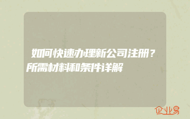 - 如何快速办理新公司注册?所需材料和条件详解