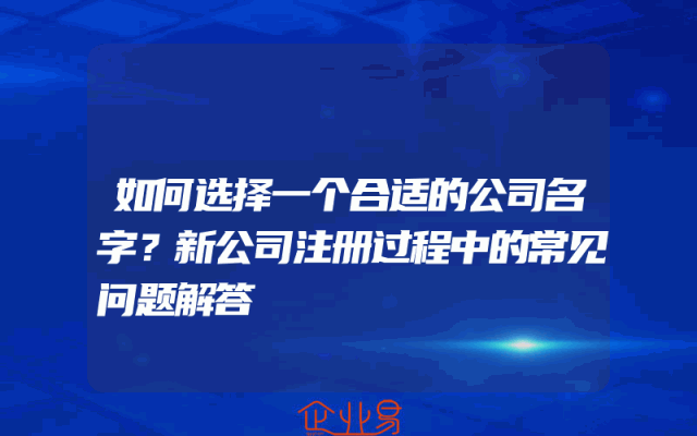 - 如何选择一个合适的公司名字?新公司注册过程中的常见问题解答