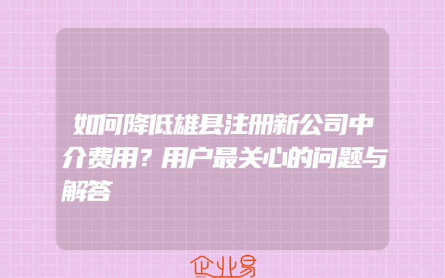 - 如何降低雄县注册新公司中介费用?用户最关心的问题与解答