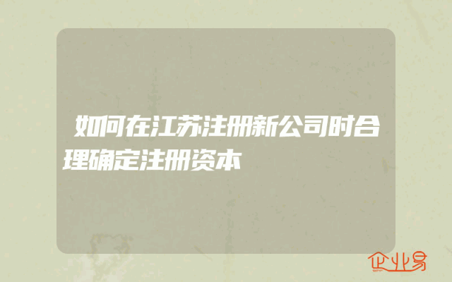 - 如何在江苏注册新公司时合理确定注册资本