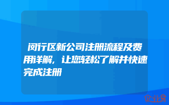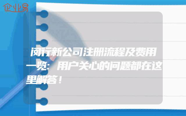 - 闵行新公司注册流程及费用一览:用户关心的问题都在这里解答!