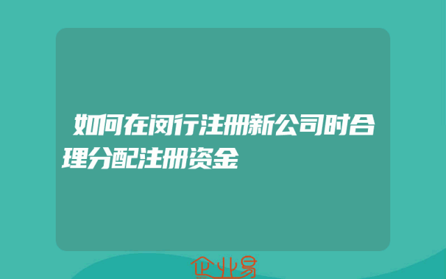 - 如何在闵行注册新公司时合理分配注册资金