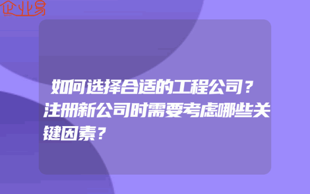 - 如何选择合适的工程公司?注册新公司时需要考虑哪些关键因素?
