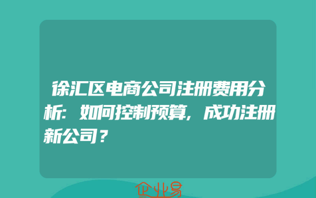 - 徐汇区电商公司注册费用分析:如何控制预算,成功注册新公司?
