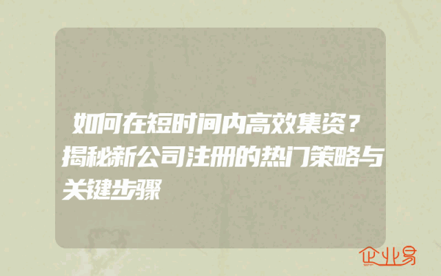 - 如何在短时间内高效集资?揭秘新公司注册的热门策略与关键步骤
