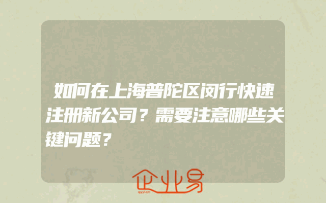 - 如何在上海普陀区闵行快速注册新公司?需要注意哪些关键问题?